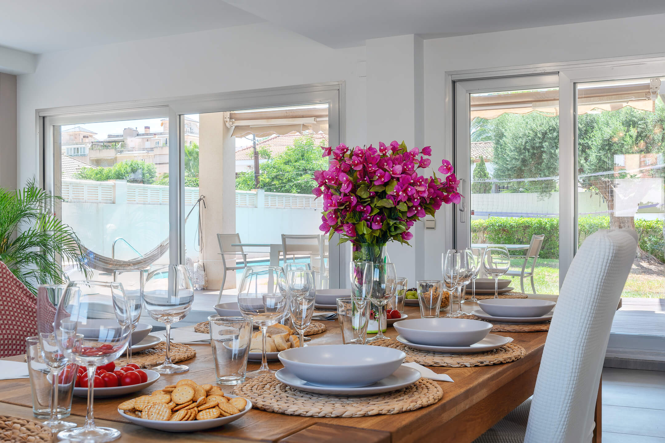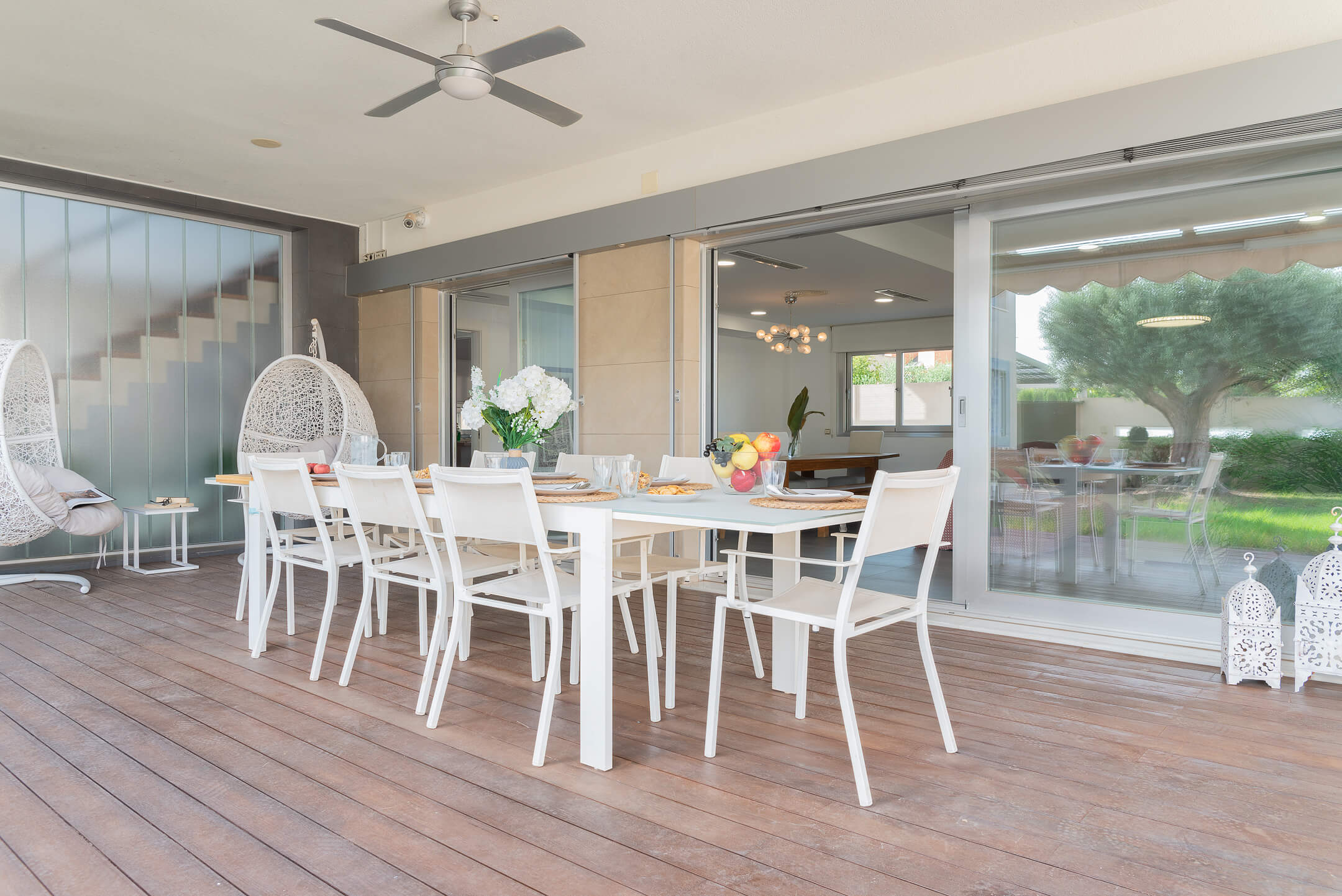 Immerse yourself in the villa’s spacious and sun-drenched interiors, where every detail is crafted for your comfort and relaxation.Step outside and discover a sprawling 600 m² garden, an oasis of tranquility featuring a saltwater pool, lush lawns, and an impressive teak wood terrace with a dining table for up to 10 guests. Unwind on the stylish swings or soak up the sun on the loungers.